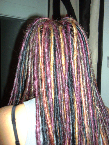 Straight is great but they've been around and around and around. A great look that is slowly making its way into dread styles are curly dreads. I adore curly dreads. Thin dreads which are made and boiled or steamed while wrapped around a small wooden or metal dowel make fantastic spiral dreads. Have the maker use different sized dowels to make the spirals for an even more natural look. Romantic and yet still tough, they have wonderful movement, bounce, flow and break up the never ending fall of straight dreads. For those who want dreads but fear the worst from their family, thin curly dreads in natural colors are the perfect compromise.