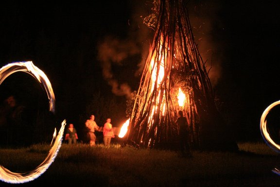 - The grand evening events: The 30 minute bonfire display, followed by the lighting of the Solstice Fire, a 30′ bonfire lit by my husband and I. Oh yeah, and the fire-dancers.