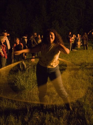 - Hula hooping in the rain, homemade music, family standards (“Standards” are big poles that bare a flag, or art display of the group, everyone was allowed to make one, and we displayed them in the meadow.)